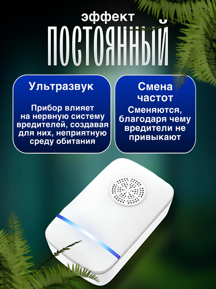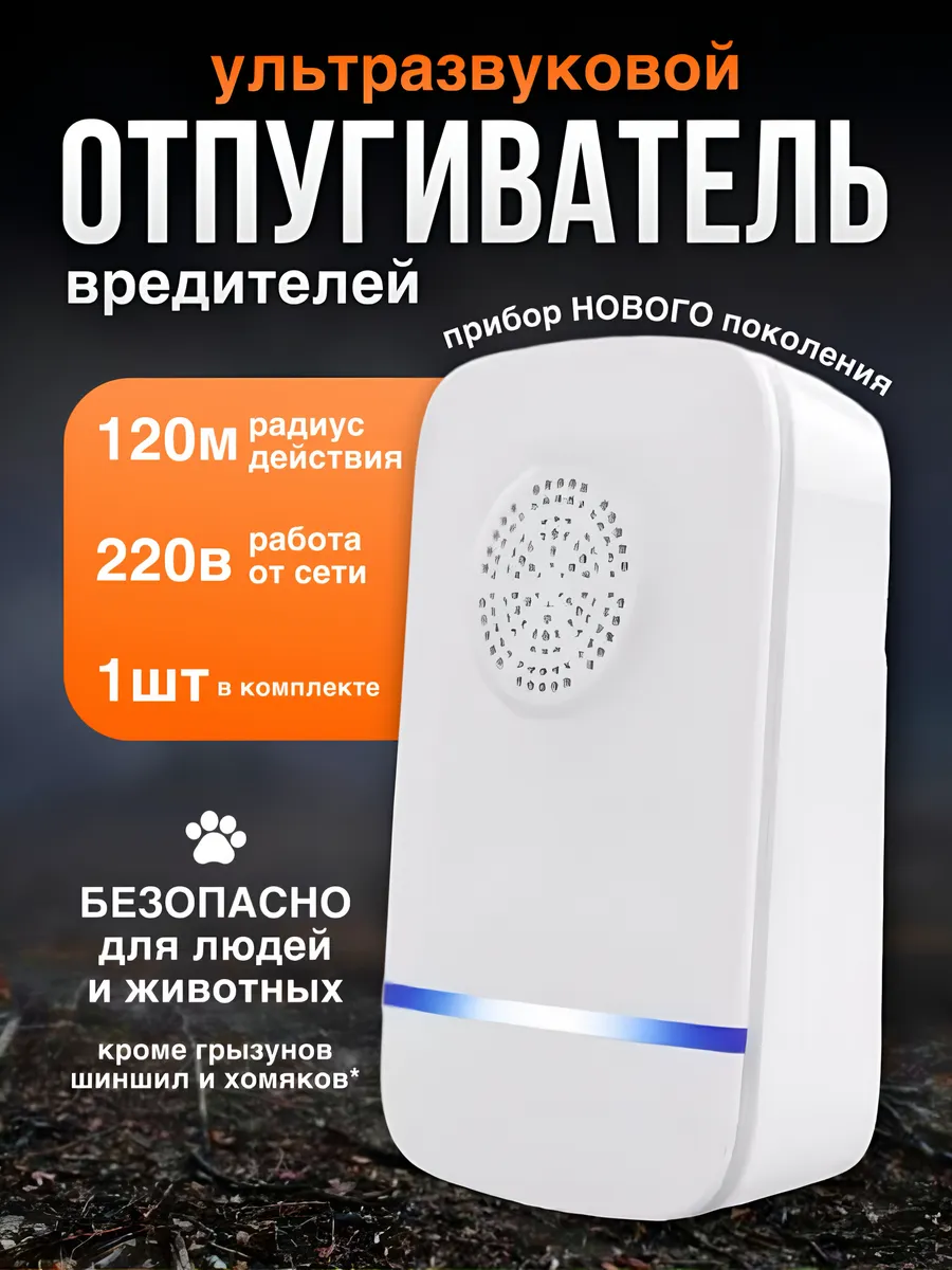 Ультразвуковой отпугиватель мышей, крыс и насекомых избавит ваш дом и любую пристройку от неприятных гостей. Помогает спастись от комаров, мошки и пауков на даче. Отдыхайте с комфортом без укусов! Также мощный отпугиватель можно использовать на улице для защиты от грызунов огорода и сада. Электронный отпугиватель работает на разных частотах, постоянно сменяя их. Что и позволяет ему воздействовать на разные типы вредителей, также не давая крысам и мышам привыкать к одной частоте.